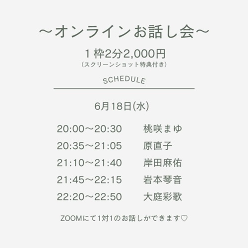 6月18日(水)「毎月トキイキ∞」〜オンラインお話し会(スクショ特典付き)〜