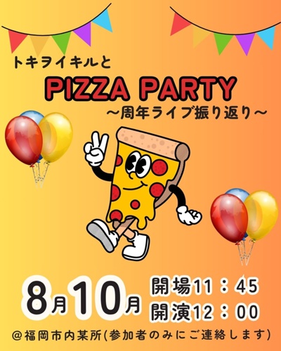 8月10日(日)【福岡】「トキヲイキルとPIZZA PARTY〜周年ライブ振り返り〜」